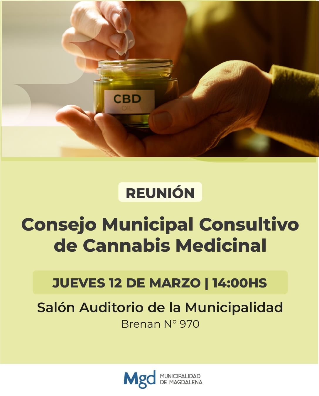 Este jueves se reunirá el Consejo Municipal de Cannabis Medicinal. La convocatoria es a las 14:00hs Posted by axell axell Last Updated: 10 marzo, 2026 en el Salón Auditorio del Palacio Municipal (Brenan 970). axell axell 10 marzo, 2026