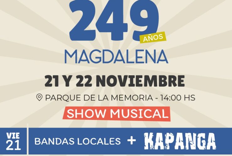 Teníamos una sorpresa más para nuestro aniversario y llegó el momento de contarte cual era… Este sábado, Fer Palacio llega a Magdalena por primera vez y será el encargado de cerrar los festejos por el 249⁰ aniversario de nuestra ciudad. ...